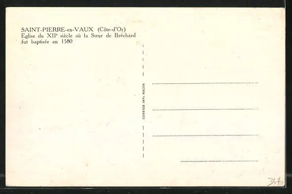 AK Saint-Pierre-en-Vaux, Eglise du XIIe siècle où la Soeur de Bréchard fut baptisée en 1580