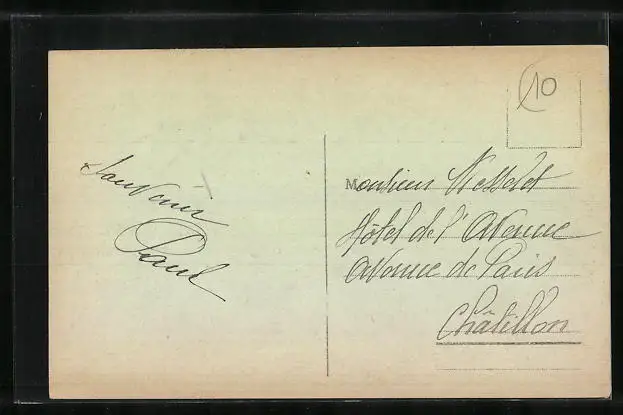 Personenbezogene Daten auf der Rückseite der Karte wurden durch blauen Textmarker unkenntlich gemacht. Die blauen Stellen sind auf die Vorderseite durchgeweicht und wirken sich negativ auf das Postkartenfoto aus