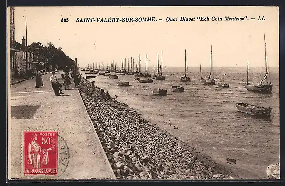 AK Saint-Valéry-sur-Somme, Quai Blavet Ech Cotn Menteux, vue sur les voiliers amarrés