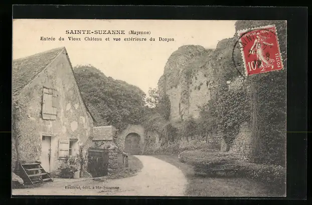 AK Sainte-Suzanne, Entrée du Vieux Château et vue extérieure du Donjon