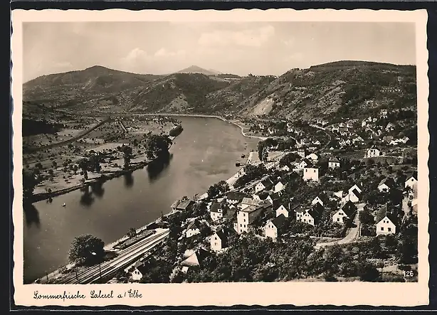 AK Salesel a. Elbe, Totalansicht von einen Berg aus