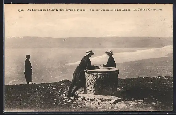 AK Salève /Hte-Savoie, Au Sommet du Salève, Vue sur Genève et le Lac Léman, La Table d`Orientation