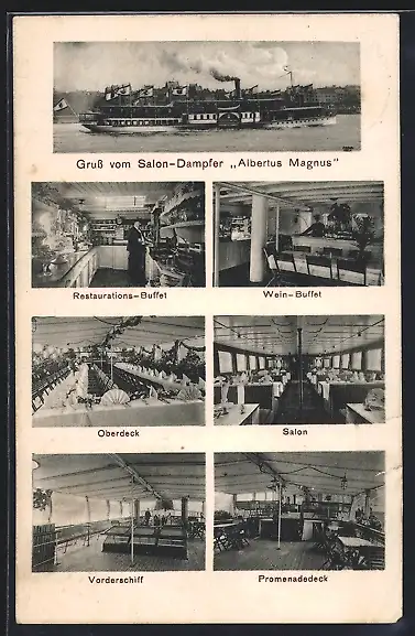 AK Salondampfer Albertus Magnus, Restaurations-Buffet, Oberdeck, Salon