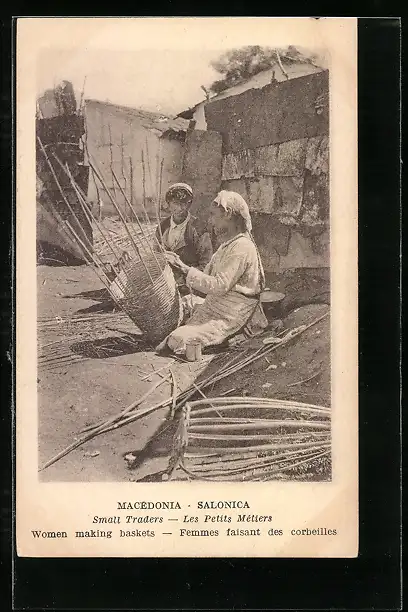 AK Salonica, Small Traders, Woman making baskets, Korbflechterin