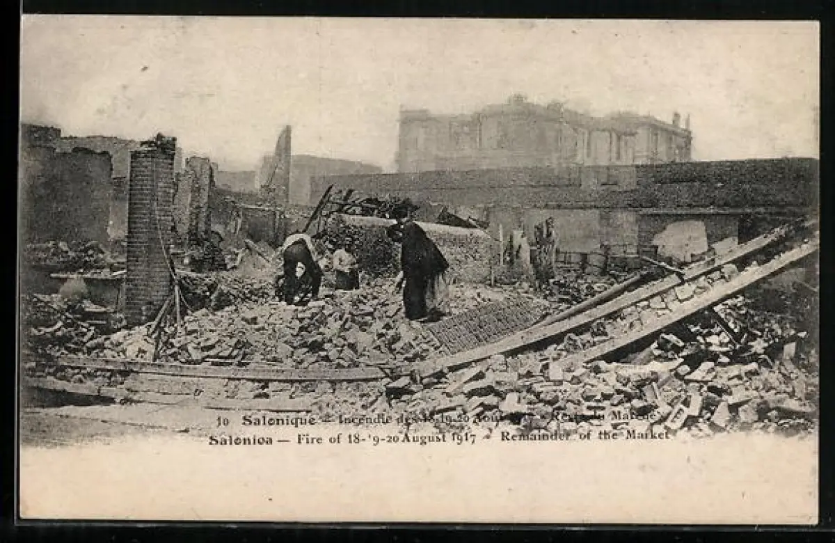 AK Salonique, Incendie des 18-19-20 Août 1917, Reste du Marché, Brand