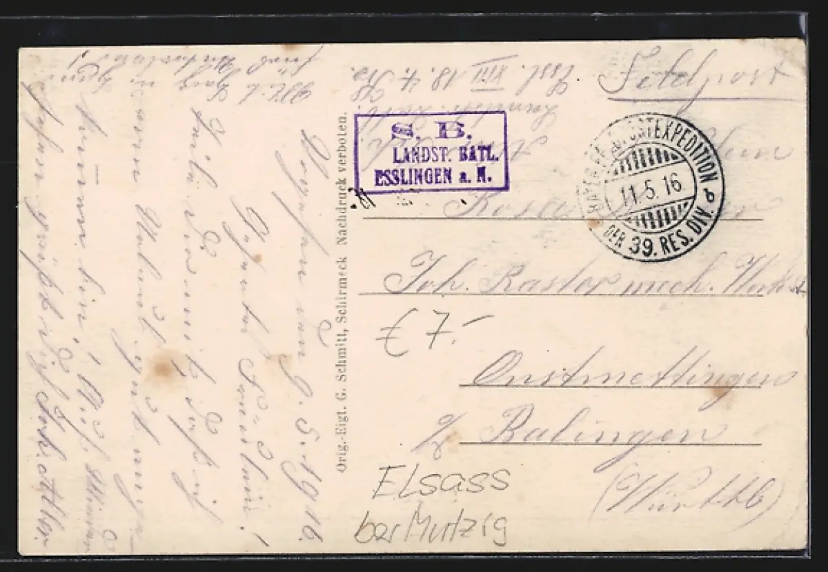 gelaufen 1916, Eckknick li. oben, Stempelspur, guter Zustand