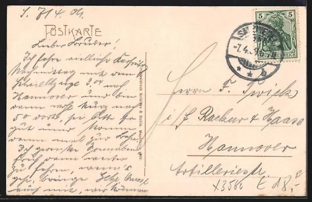 alte Ansichtskarte, gelaufen 1909, guter Zustand