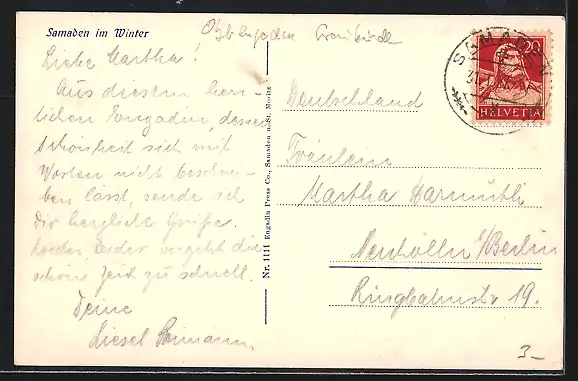AK Samaden, Winterpartie mit Langläufern