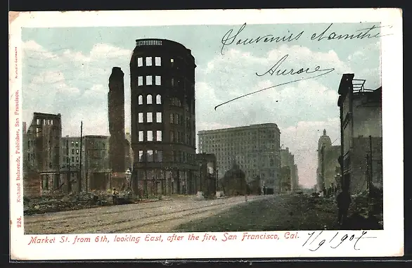 AK San Francisco, Cal., Market St. from 6th, looking East, after the fire, Erdbeben