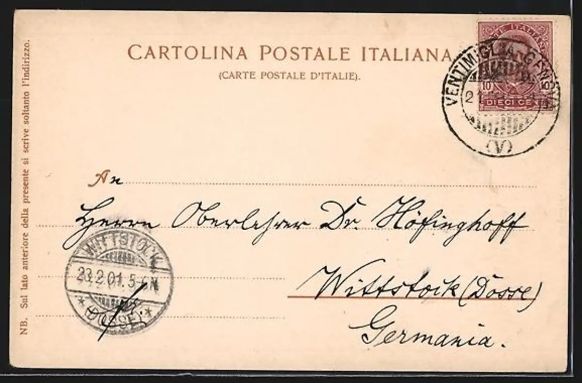 alte Ansichtskarte, gelaufen 1901, Eckknicke oben, guter Zustand