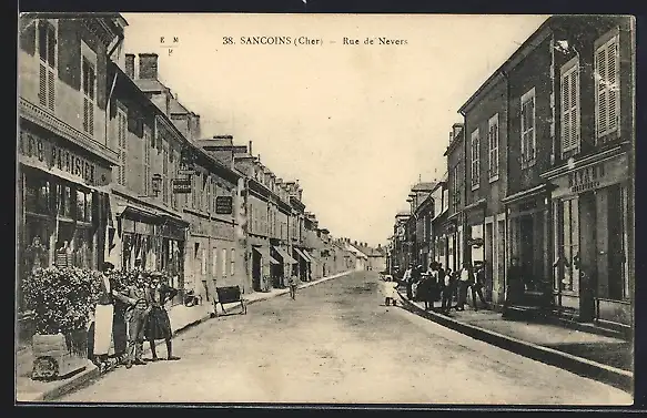 AK Sancoins, Rue de Nevers avec des passants et commerces animés