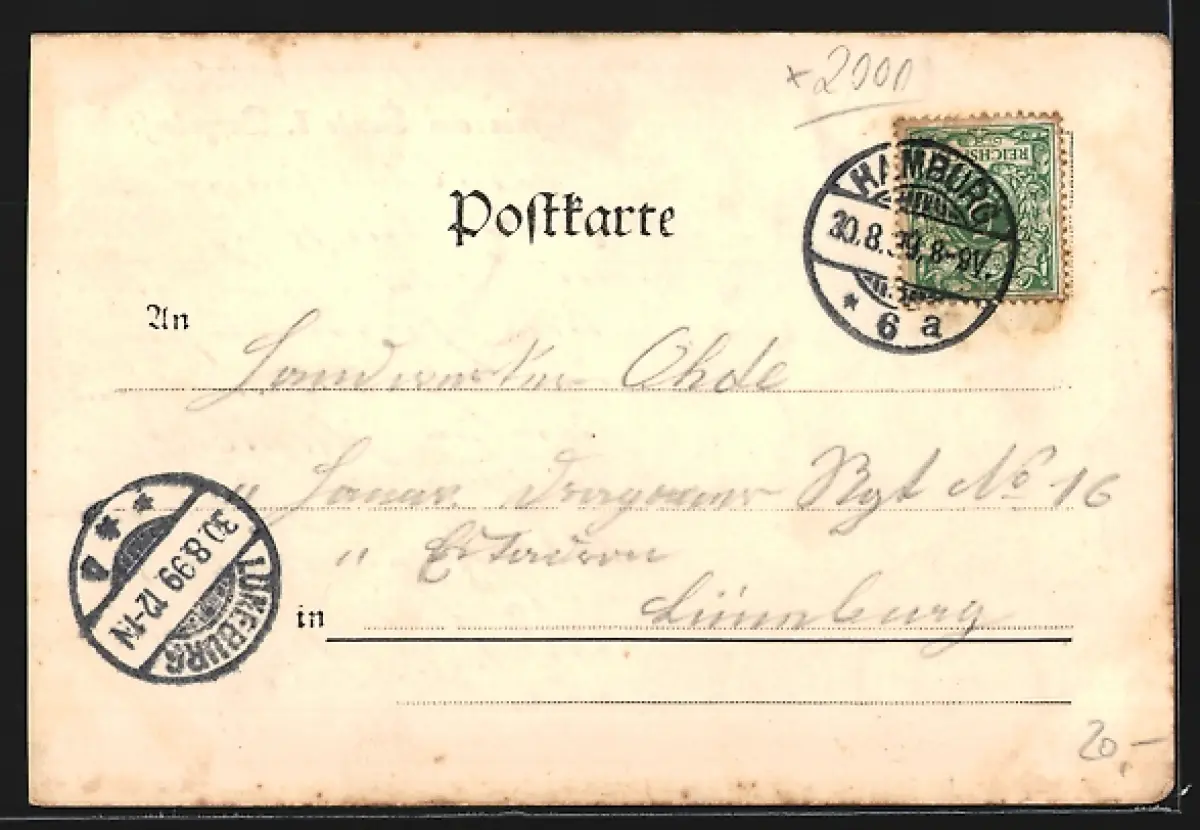 alte Ansichtskarte, gelaufen 1899, guter Zustand