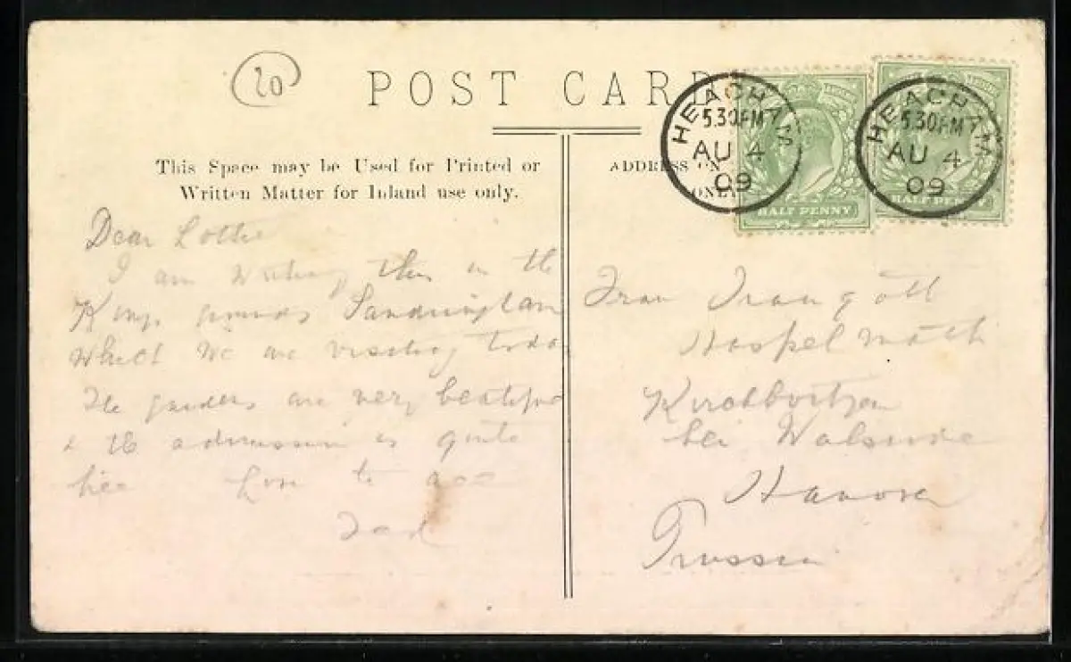 alte Ansichtskarte, gelaufen 1909, Eckknicke li., guter Zustand