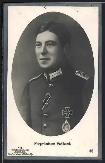 AK Sanke Nr. 418, Fliegerleutnant Fahlbusch in Uniform