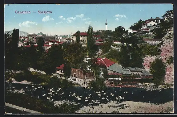 AK Sarajewo, Stadtansicht mit Flusslauf Capajebo