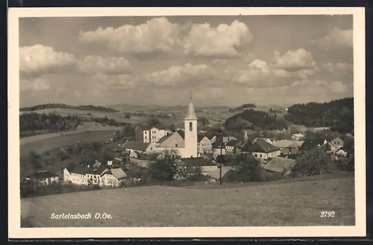 AK Sarleinsbach, Ortsansicht mit Blick in die Ferne