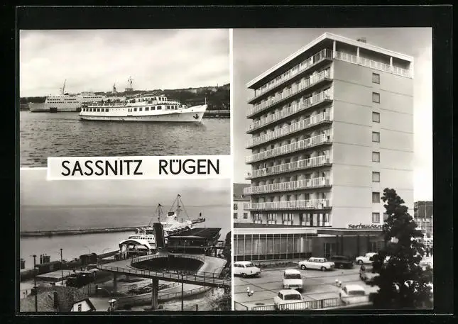 AK Sassnitz /Rügen, Fährbahnhof, Rügen-Hotel