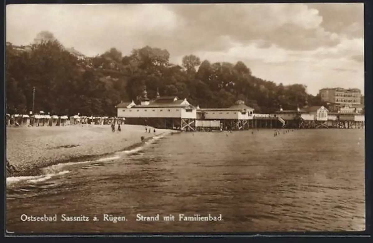 AK Sassnitz a. Rügen, Strand mit Familienbad