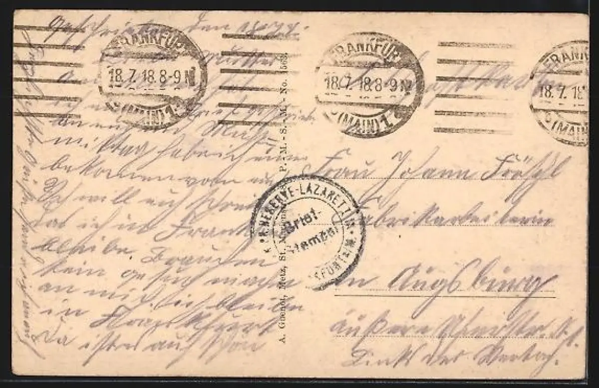 gelaufen 1918, Eckknick re. unten, guter Zustand