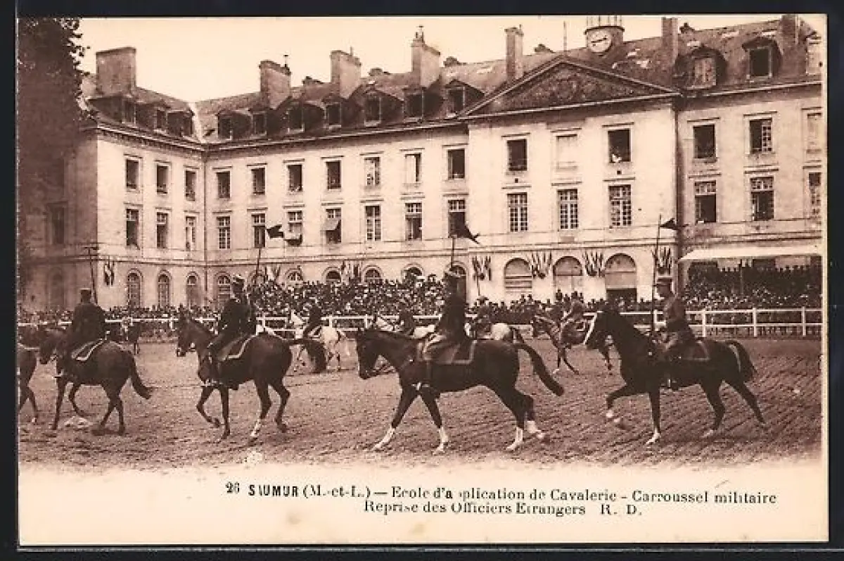 AK Saumur /M.-et-L., École d`application de Cavalerie, Carrousel militaire des Officiers Étrangers