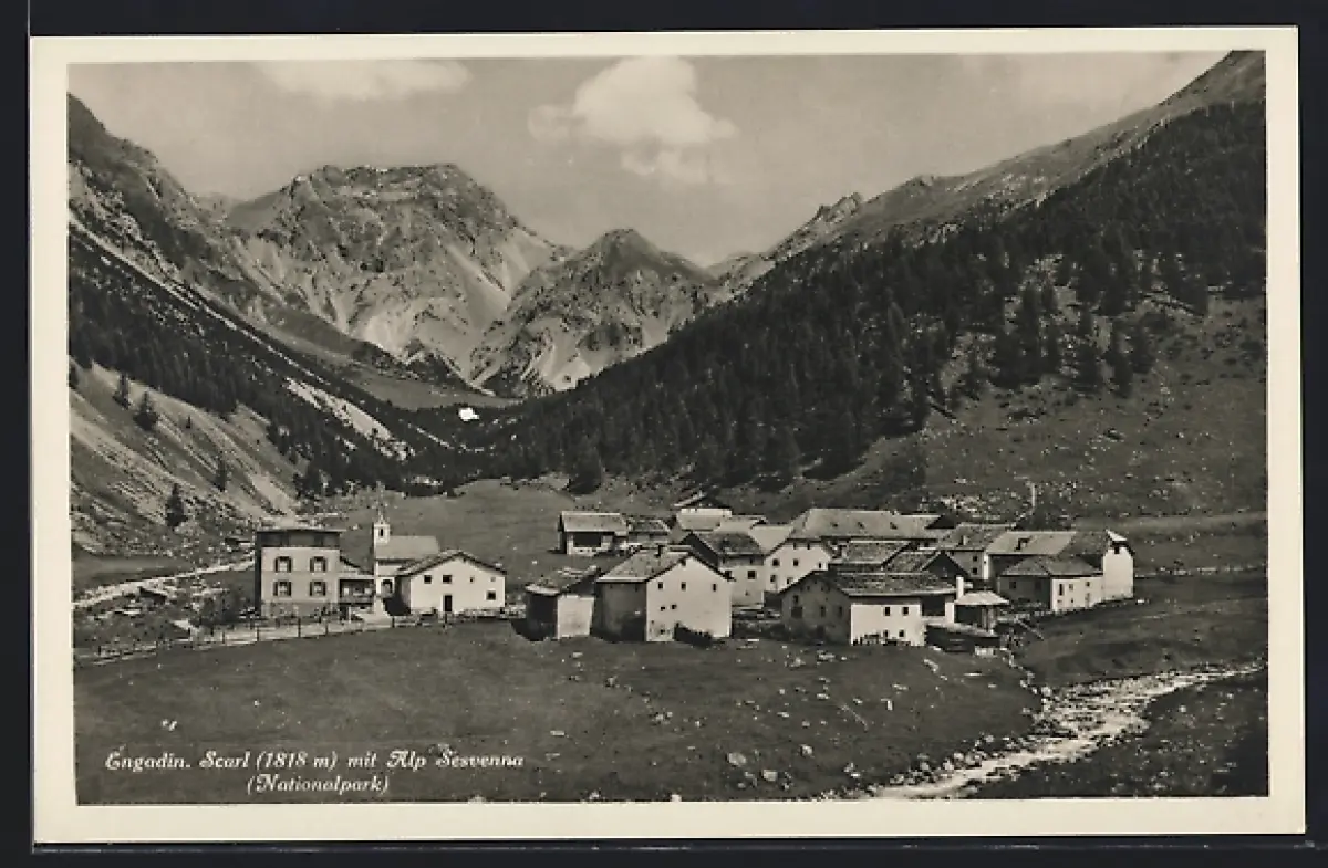 AK Scarl, Ortsansicht mit Alp Sesvenna