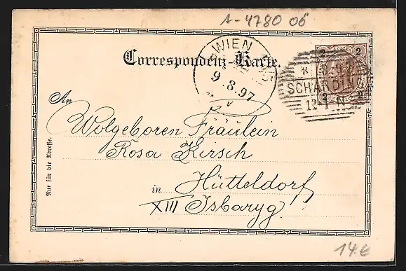 alte Ansichtskarte, gelaufen 1897, Eckknick li. oben, guter Zustand