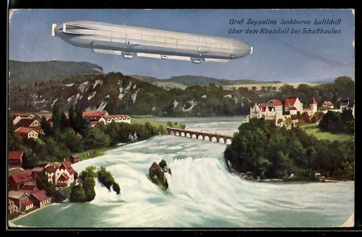 AK Schaffhausen, Zeppelin über dem Rheinfall, Wasserfall