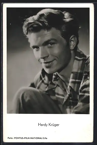 AK Schauspieler Hardy Krüger in kariertem Hemd