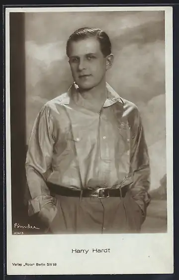 AK Schauspieler Harry Hardt mit den Händen in den Hosentaschen in die Kamera blickend