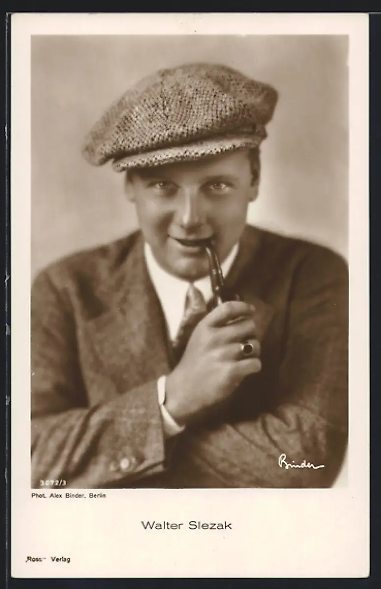 AK Schauspieler Walter Slezak mit Pfeife in der Hand porträtiert