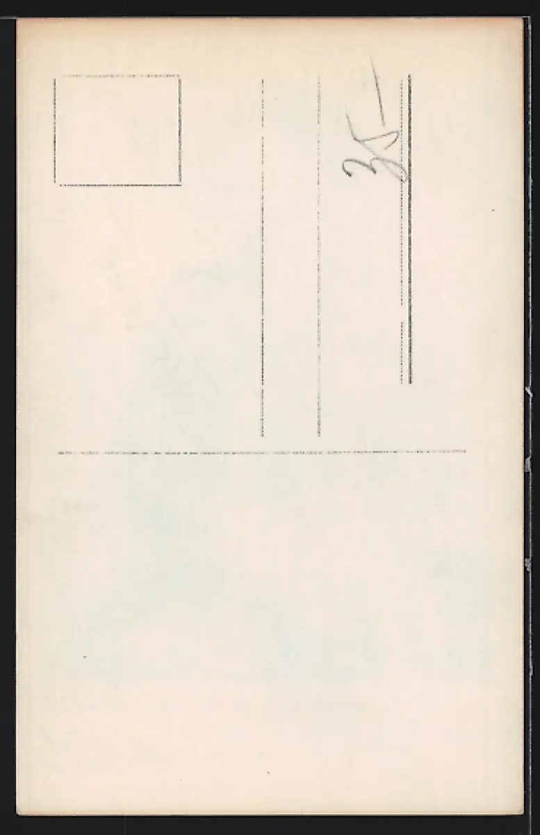Personenbezogene Daten auf der Rückseite der Karte wurden durch blauen Textmarker unkenntlich gemacht. Die blauen Stellen sind auf die Vorderseite durchgeweicht und wirken sich negativ auf das Postkartenfoto aus