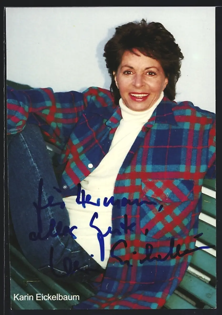 AK Schauspielerin Karin Eickelbaum mit lächelndem Gesicht, Autogramm