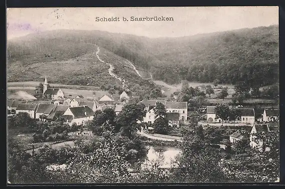 AK Scheidt b. Saarbrücken, Teilansicht mit Kirche