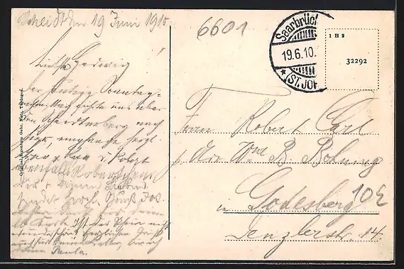 gelaufen 1910, Briefmarke entfernt, guter Zustand