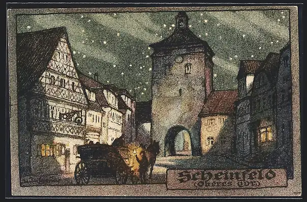 AK Scheinfeld, Partie am Oberen Tor bei Nacht