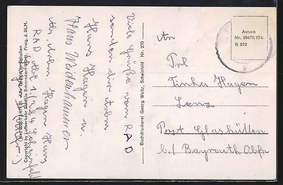 alte Ansichtskarte, gelaufen, Briefmarke entfernt, guter Zustand