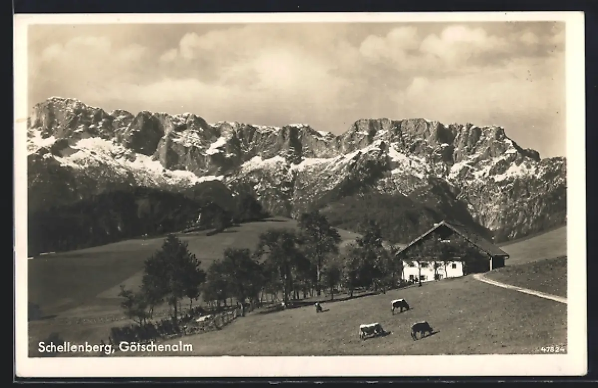 AK Schellenberg / Obb., Gasthof Götschenalm mit herrlichem Bergpanorama