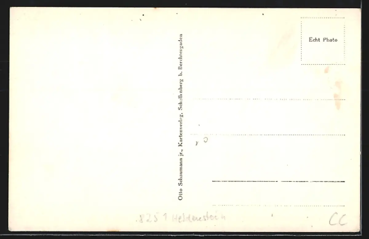 Personenbezogene Daten auf der Rückseite der Karte wurden durch blauen Textmarker unkenntlich gemacht. Die blauen Stellen sind auf die Vorderseite durchgeweicht und wirken sich negativ auf das Postkartenfoto aus