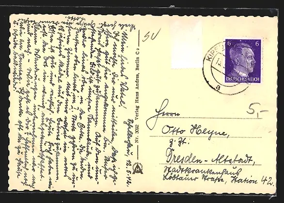 gelaufen 1942, rückseitig Klebe- und Papierreste, guter Zustand