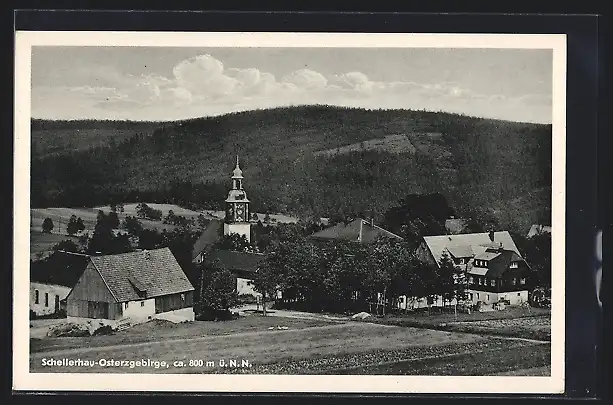 AK Schellerhau /Erzgeb., Ortsansicht mit Kirche