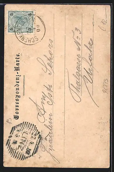 alte Ansichtskarte, gelaufen 1900, Eckknick re. unten, guter Zustand