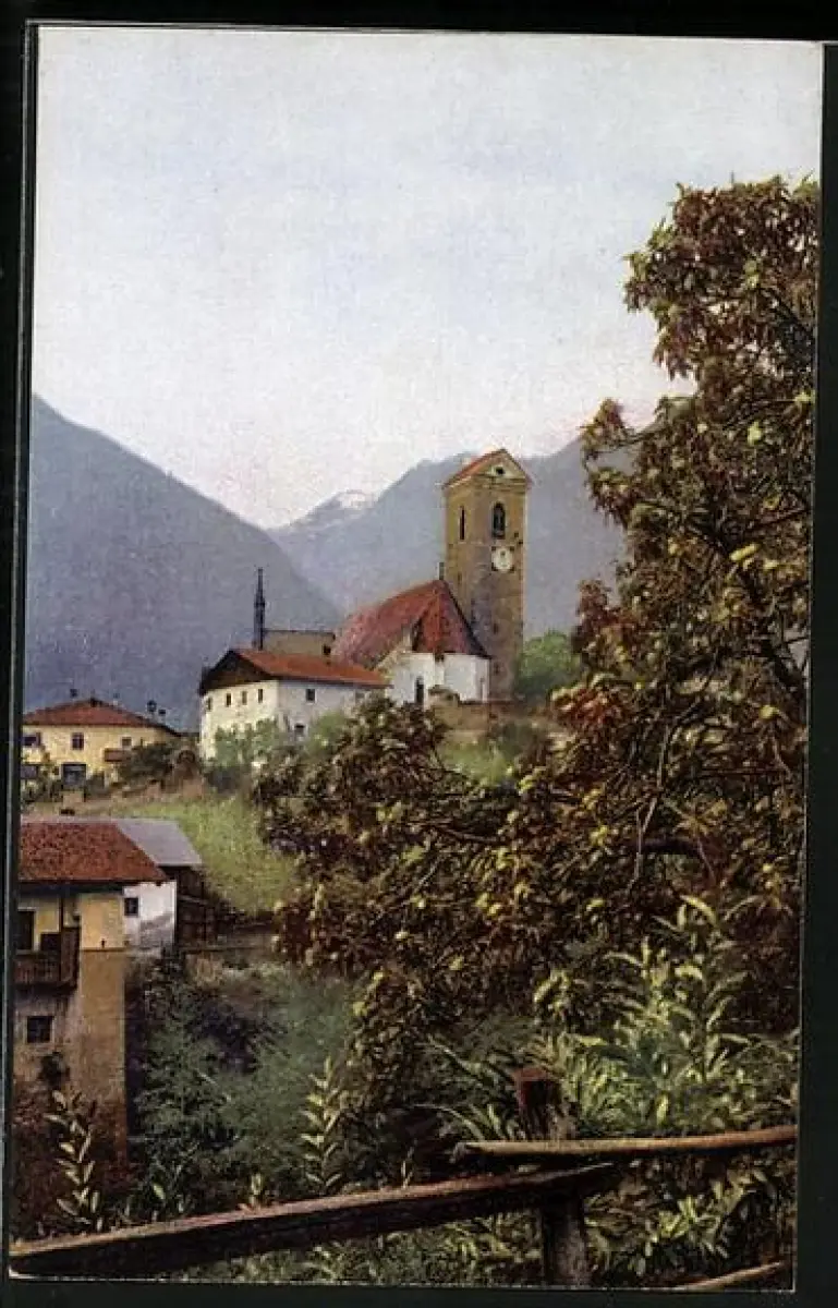 AK Schenna, Dorfpartie mit Kirche