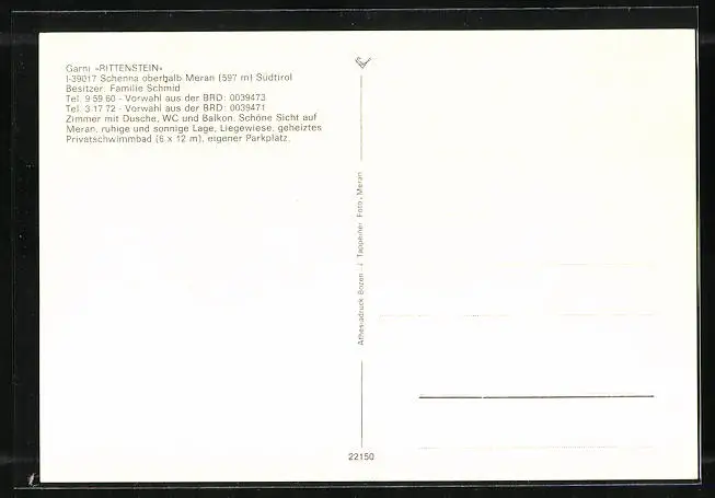 AK Schenna b. Meran, Hotel Garni Rittenstein
