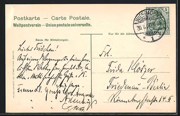 alte Ansichtskarte, gelaufen 1907, guter Zustand