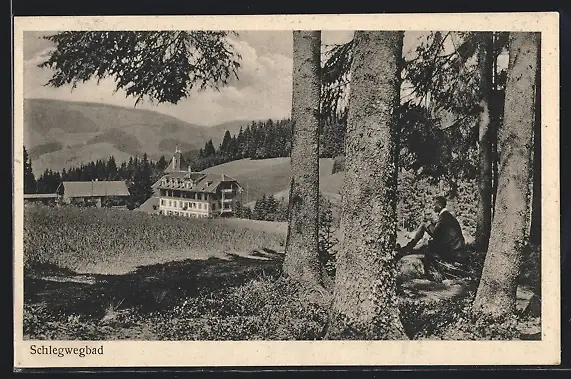AK Schlegwegbad, Teilansicht, Junge sitzt im Wald