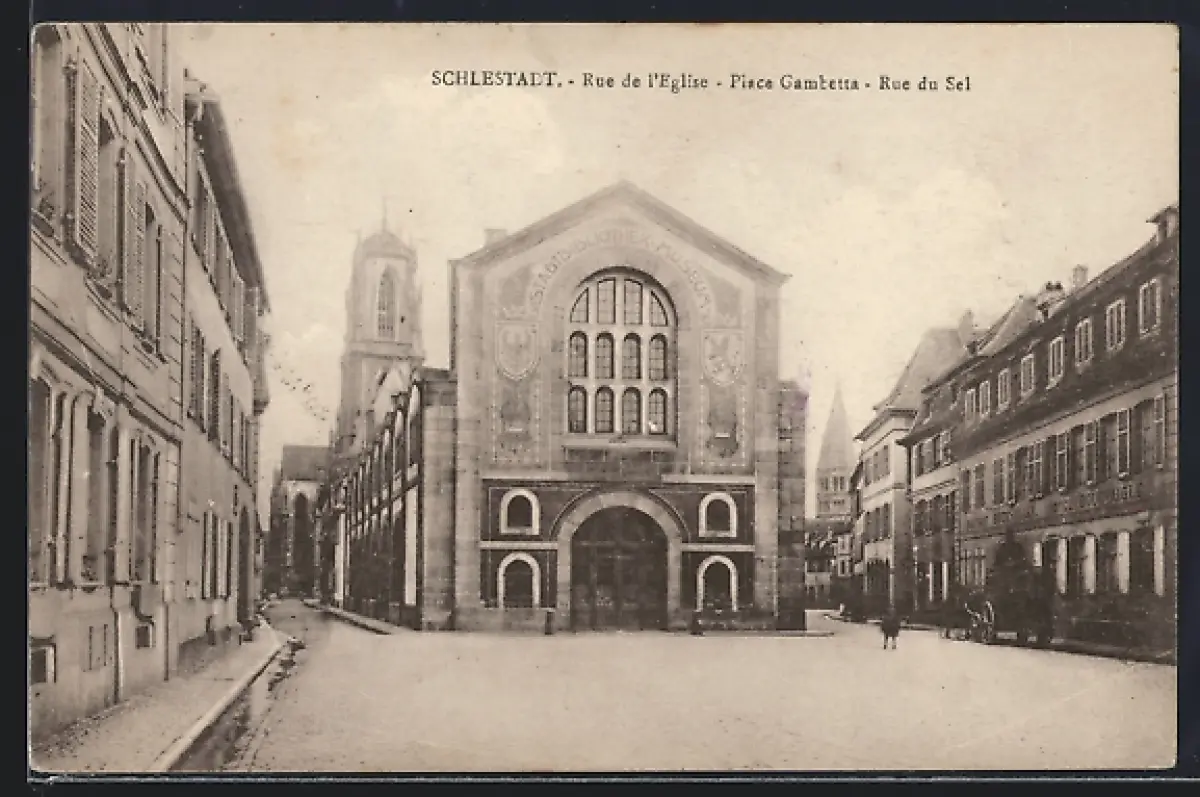 AK Schlestadt, Rue de l`Église, Place Gambetta, Rue du Sel