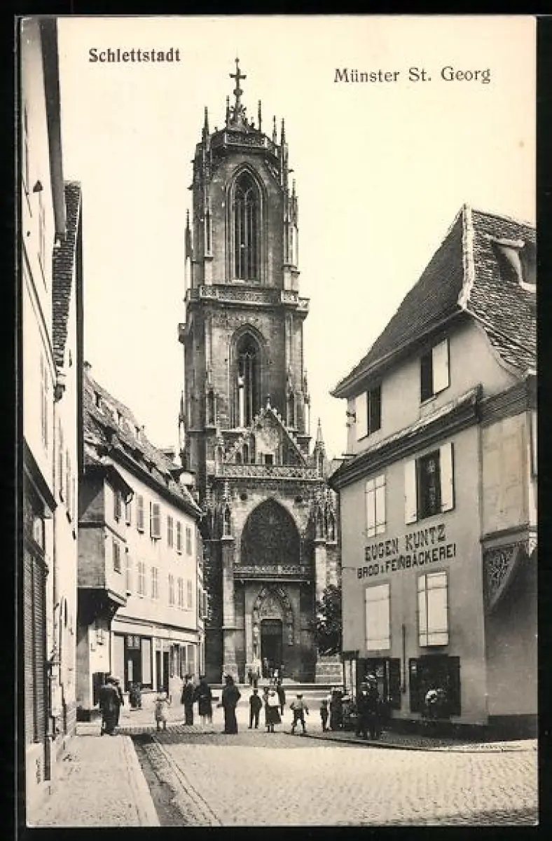 AK Schlettstadt, Münster St. Georg, Bäckerei Eugen Kuntz