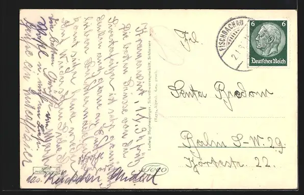 alte Ansichtskarte, gelaufen 1934, Stecknadelloch oberer Rand mittig, guter Zustand