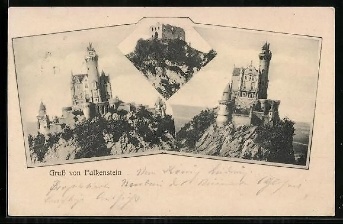 AK Schloss Falkenstein, Vor- u. Rückansicht, Ruine
