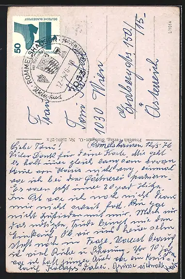 alte Ansichtskarte, gelaufen 1976, Eckknicke li., guter Zustand